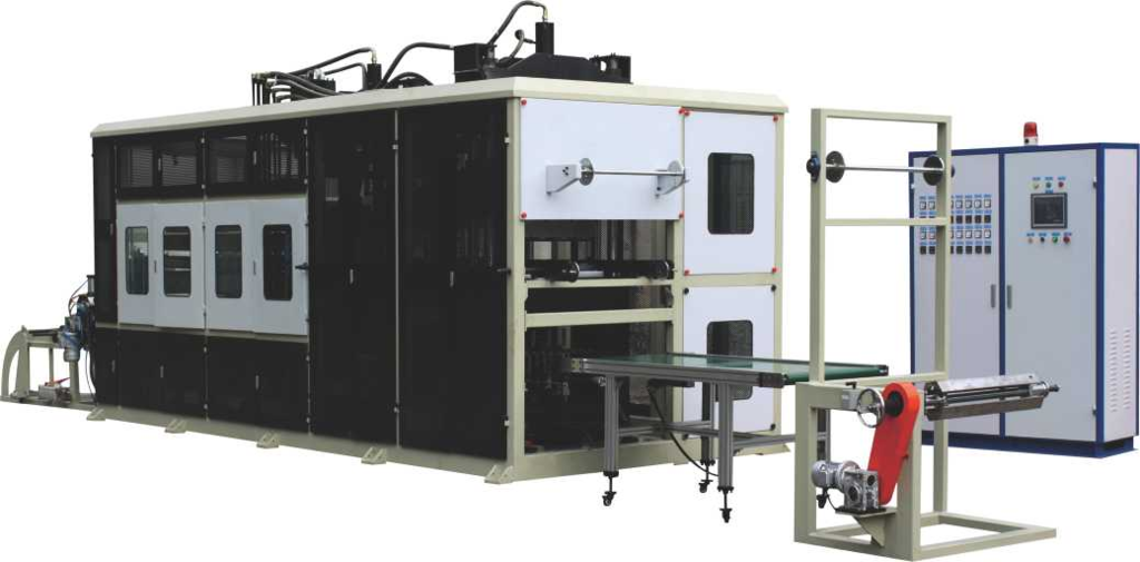 厚片吸塑機(jī)又名厚片吸塑成型機(jī)或厚片機(jī),是以塑料板材為原料、通過真空吸塑成型工藝制取吸塑成型塑料件的關(guān)鍵工藝設(shè)備,它以熱塑性塑料片材為原料,通過烘箱加熱至軟化溫度,再通過塑料板材與吸塑成型模具之間的真空負(fù)壓作用,使處于熱塑性狀態(tài)的塑料板材吸附在吸塑成型模具工作面上再冷卻成型